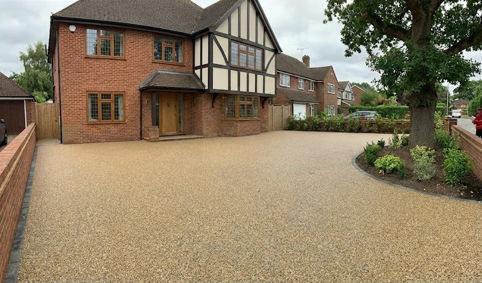 • Unrivalled Kerb Appeal: With hundreds of colour blends available—from "Golden Quartz" to "Slate Grey"—you can customise your driveway to perfectly match your home’s brickwork or cladding. Our network of skilled resin surfacing installers can even create borders, house numbers, or logos directly into the surface using contrasting colours.